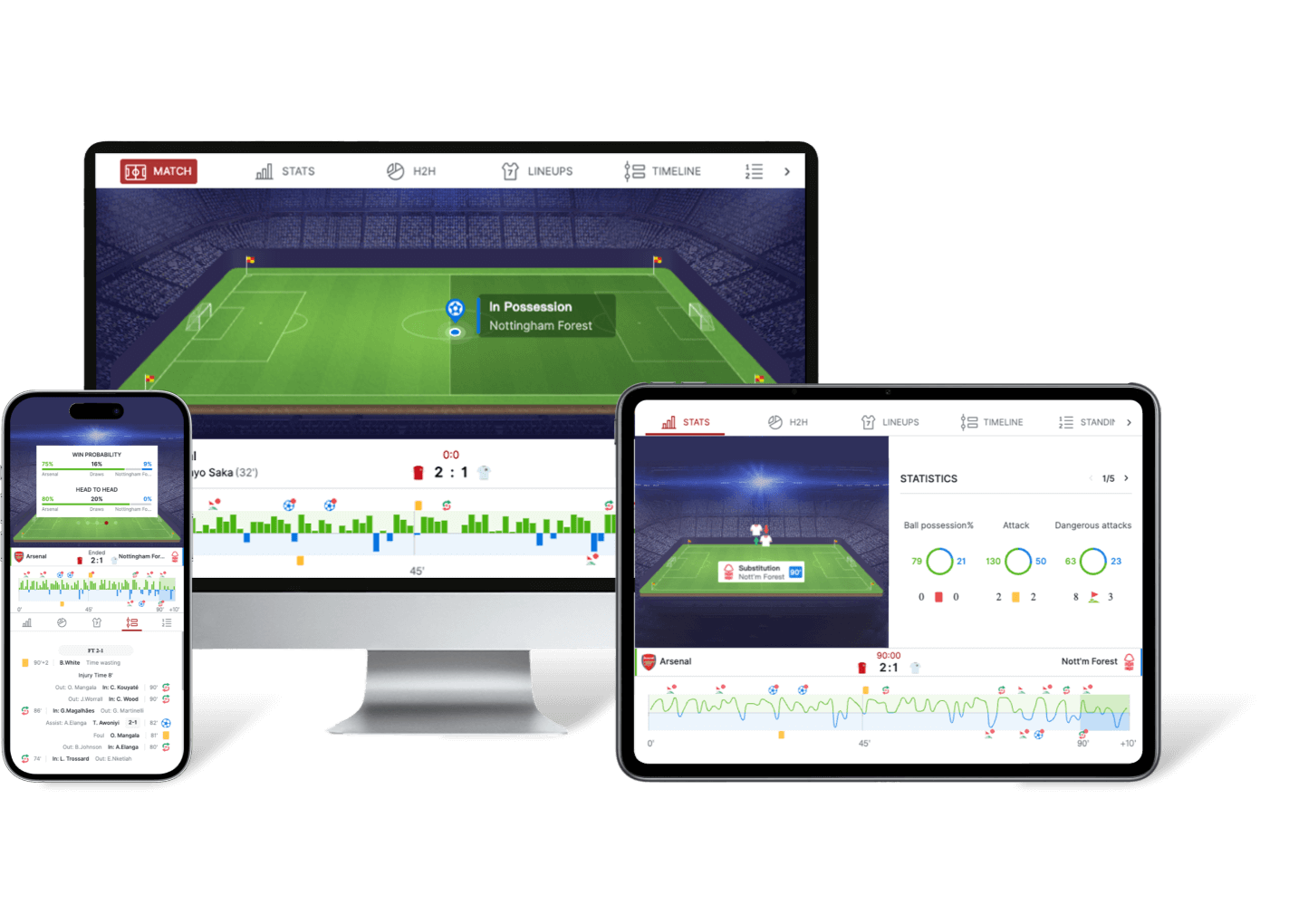 Capture every heartbeat of the game with a dynamic, multi-screen live match center.
